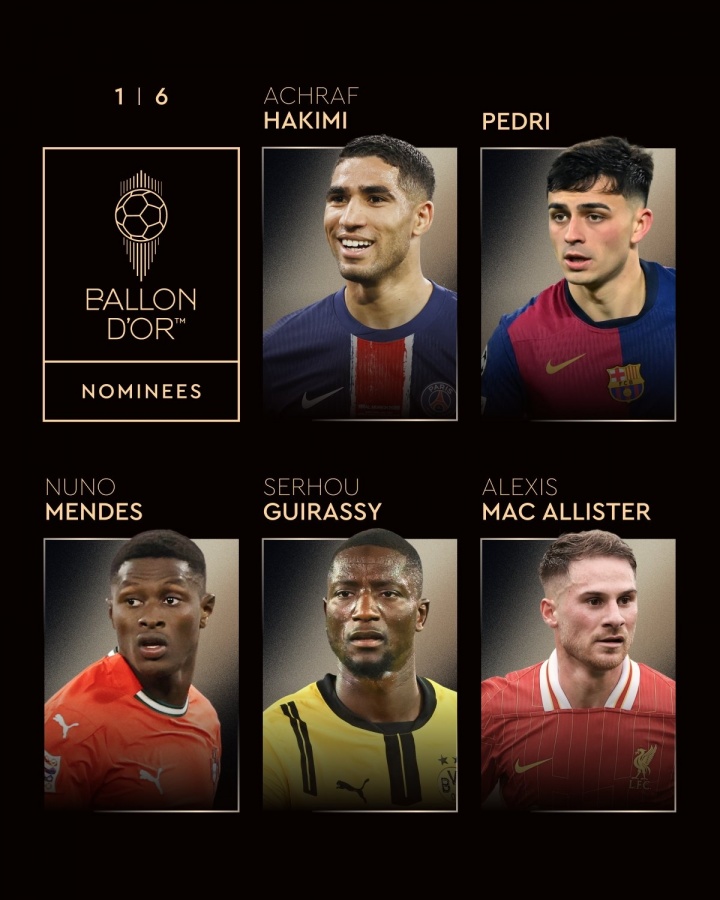24 Live Network 8月7日新聞金球獎?wù)叫剂?025年男子金球獎的30人入圍名單。登貝勒(Dembele)帶領(lǐng)巴黎的9名球員入圍,雅馬爾(Yamal),拉菲尼亞(Rafinia)和姆巴佩(Mbappe)被列出。